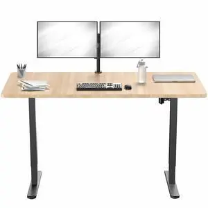 VIVO Electric 63" x 32" Stand Up Desk, Light Wood Table Top, Black Frame