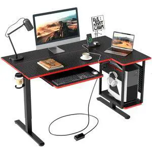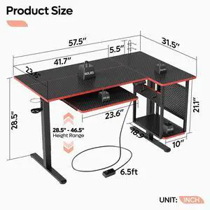 Bestier Height Adjustable Electric Standing Desk ,57.5 inch L-Shaped Sit Stand Computer Table with Keyboard Tray, Carbon Fiber Black
