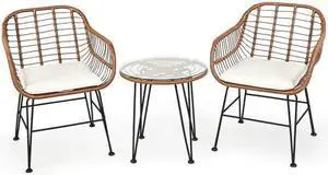 SlickBlue 3 Pieces Patio Rattan Bistro Set with Cushion