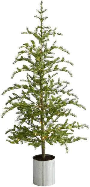 Nearly Natural 6.5' Slim Green Mountain Pine Christmas Tree w/300 Clear LED