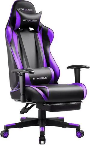 GTRACING Footrest, Ergonomic Computer Game Desk, Reclining Gamer Chair Seat Height Adjustment Swivel Rocker with Headrest and Lumbar, Purple