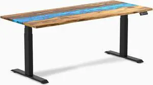 Desky Dual Resin Hardwood Sit Stand Desk - Teak Blue River / 72 x 30 inches / Matte Black
