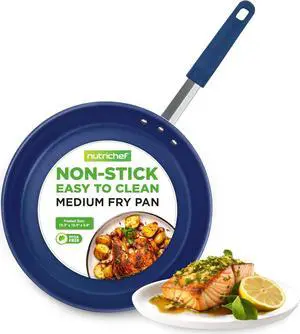 NutriChef 10" Medium Fry Pan - Medium Skillet Nonstick Frying Pan with Silicone Handle, Ceramic Coating, Blue Silicone Handle, Stain-Resistant And Easy To Clean, Professional Home Cookware