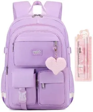qodbopack School Backpack For Student Women College Middle High Teen Girls Bookbag Waterproof Laptop Bag Purple