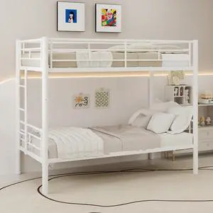 Twin Over Twin Metal Bunk Bed for Kids Boys Girls,Metal Structure Bedframe with Ladders & Guardrail,Convertible 2 Beds,No Spring Box Required