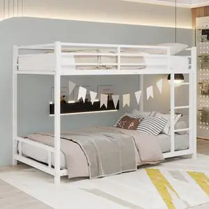 Heavy-duty Sturdy Meta Twin over Twin Bunk Bed/l/ Noise Reduced/ Safety Guardrail/No Box Spring Needed,White