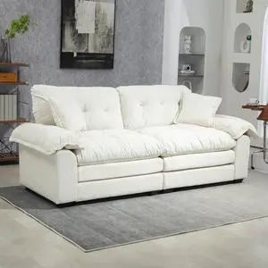 Modern Memory Foam Compressed Sofa,2 Seater Large Sectional Couches for Living Room,Pet-Friendly Cloud Modular Sectional Sofa,Corduroy Fabric,Extra Deep Loveseat,No Assembly required, Beige