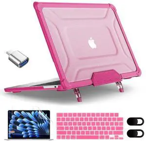 MEEgoodo Case for MacBook Air 15 inch 2025 2024 2023, Case Fit Model (A3241/A3114/A2941) with M4/M3/M2 Chip, Laptop Hard Shell with Heavy Duty Rugged Shockproof, Pink XK