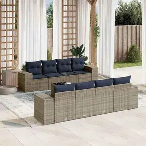 vidaXL 8 Piece Garden Sofa Set with Cushions Grey Poly Rattan
