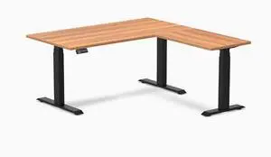 Desky L-Shape Laminate Sit Stand Desk - Prime Oak / 59 x 29.5 x 61.5 x 20 in / Matte Black