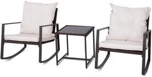 SlickBlue 3 PCS Patio Rocking Wicker Bistro Set Outdoor Rattan Wicker Set with Cushion