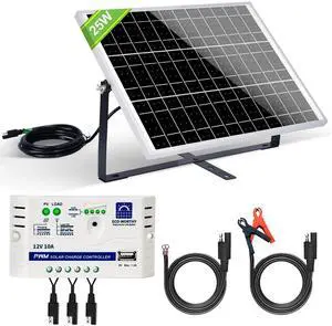 25 Watts 12V Off Grid Solar Battery Charger Kit: Waterproof Solar Panel + Adjustable Mount Bracket + SAE Connection Cable +10A Charge Controller for Car RV Marine Boat 12V Battery