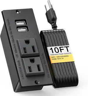 Kungfuking Desktop Power Grommet Conference Recessed Power Strip in Desk Outlet Power Socket 2-Socket &2-USB Ports 9.85 FT Extension Power Cord, ETL Listed