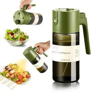 Glass 2 In 1 Olive Oil Dispenser Bottle for Kitchen Gadgets, Olive Oil Sprayer for Cooking 17oz/500ml (Light Blockage, Green)