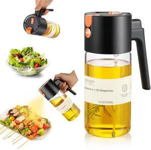 Glass 2 In 1 Olive Oil Dispenser Bottle for Kitchen Gadgets, Olive Oil Sprayer for Cooking 17.2oz/511ml (Transparent)