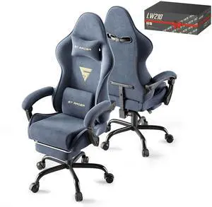 SOONTRANS Ergonomic Gaming Chair for Adult, Velvet Fabric High Back Gamer Game Chair with Footrest, Comfortable Computer Office Chair with Massage Lumbar Cushion, Reclining Video Desk Chair, Grey