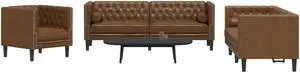 vidaXL Chesterfield Sofa Set with Bolsters 3 Piece Brown Faux Suede Leather