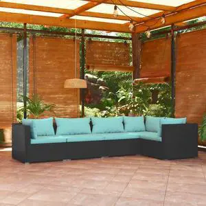 vidaXL Patio Lounge Set Outdoor Sectional Sofa Set 5 Piece Poly Rattan Black