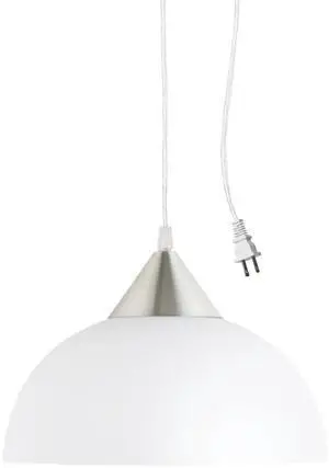 64413 1-Light Plug-in Pendant, Brushed Steel, Frosted White Shade, 15ft Clear Cord, in-Line On/Off Switch, E26 Base Socket, Kitchen Island, Café, Hanging Light, Bulb Not Included