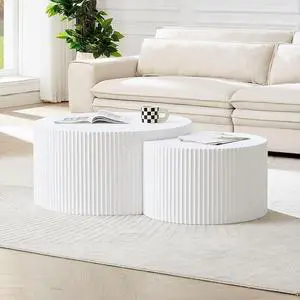 MAISON ARTS Coffee Table, Farmhouse 2-Tier Coffee Tables with Storage for Living Room Modern Coffee Table Set, Ivory White