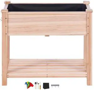 Raised Garden Bed, 34 x 18 x 30 in Wooden Planter Box, Elevated Outdoor Planting Boxes with Legs, for Growing Flowers/Vegetables/Herbs in Backyard/Garden/Patio/Balcony, Burlywood