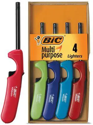 BIC Multi-purpose Classic Edition Lighters, Long Durable Metal Wand, Great For Grills, Fireplaces and Candles, Utility Lighter, Assorted Colors, 4-Count
