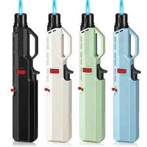 ZQMW Torch Lighter, Butane Lighter, Windproof Adjustable Big Jet Flame Butane Torch, Refillable Gas Long Torch Lighter with Safety Lock for Candle Grill Camping BBQ Kitchen Soldering, Gas Not Included