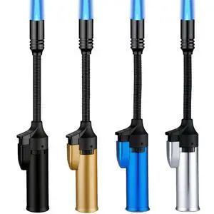 Megainvo Butane Lighter Torch Long Lighter Gas Refillable Fireplace with Adjustable and Continuous Flame, Long Neck Camping for Candle Fireplace Grill Camping (No Butane Included)