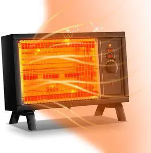 Portable Space Heater Electric Radiant Heater Fast Heating with Adjustable Thermostat, Portable Indoor Heater with Handle Quiet Energy-Saving 1250W/1500W for Office Home Garage Bedroom Black