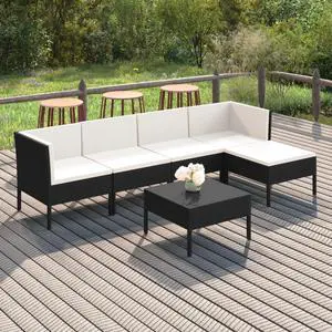 vidaXL Patio Lounge Set Outdoor Sectional Sofa Set 6 Piece Poly Rattan Black
