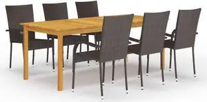 vidaXL Patio Dining Set 7 Pieces Brown Outdoor Garden Dinner Lounge Seating