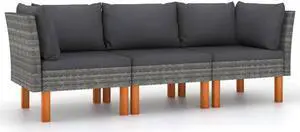 vidaXL Patio Furniture Set 3 Piece Sofa Set with Cushions Gray Poly Rattan