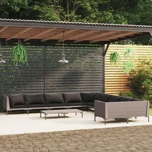 vidaXL Garden Lounge Set Patio Sectional Sofa Couch 12 Piece Poly Rattan Gray