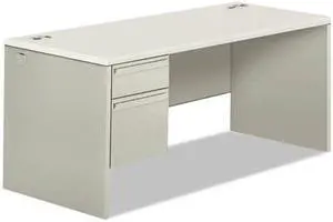 38000 Series Single Pedestal Desk, 66" Wide, Right, Silver Mesh/Light Gray