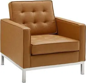 Loft Tufted Upholstered Faux Leather Armchair Set of 2 Silver Black
