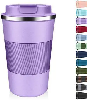 Insulated Coffee Tumbler 12 oz, Stainless Steel Coffee Mug with Lids, Travel Coffee Mug Leak Proof, Double Wall Vacuum Insulated Reusable Coffee Cup, Keep Drinks Hot and Cold (Lavender, 12 Ounces)