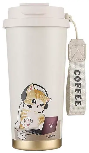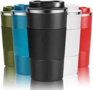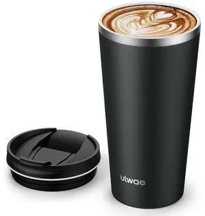 Coffee Travel Mug with Straw & Flip Lid, 16oz Insulated Tumbler Cup with Ceramic Coating, Double Wall Vacuum Leak-Proof Mug for Office School Party Camping