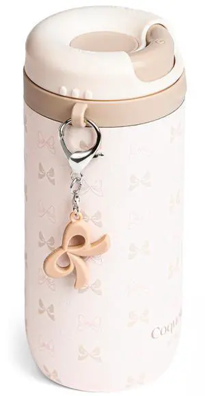 15 oz Stainless Steel Coffee Tumbler with Twist-Open Lid, Insulated Travel Mug for Iced Coffee Cold Brew and Warm Beverages, Leakproof, BPA-Free, Cup Holder Friendly, Bow Cream