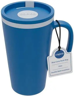 Cone Insulated Travel Coffee Mug with Handle, 16 oz - Double Wall with Twist-Off Spill Resistant Lid, BPA-Free Plastic Cup for Hot & Cold Drinks, Microwave & Dishwasher Safe (Blue)