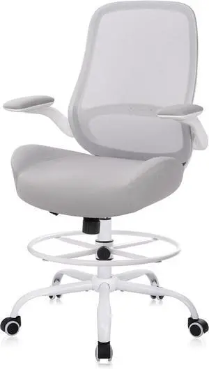 HYLONE Drafting Chair Tall Office Chair with Flip-Up Armrests Ergonomic Computer Chair with Lumbar Support Adjustable Footrest Ring Mesh Standing Desk Chair (Grey)