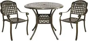 MEETWARM 3 Piece Patio Bistro Set, Outdoor All-Weather Cast Aluminum Dining Furniture Set Includes 2 Chairs and a 35.4 Round Table with Umbrella Hole for Garden Deck