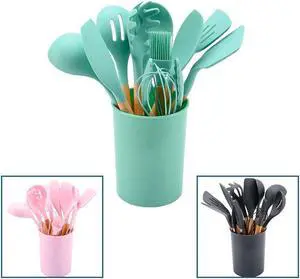 Silicone Kitchenware Cooking Utensils Set Non-stick Cookware Spatula Shovel Egg Beaters Wooden Handle Kitchen Cooking Tool Set