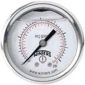 WINTERS PFQ2201 Industrial Pressure Gauge, 0 to 1,000 psi, 2 in Dial, 1/4 in