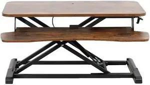 VIVO Rustic Vintage Brown Standing Desk Riser, Tabletop Sit-Stand, Black Frame