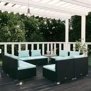 vidaXL Garden Lounge Set Black PE rattan Modular Garden Lounge Set