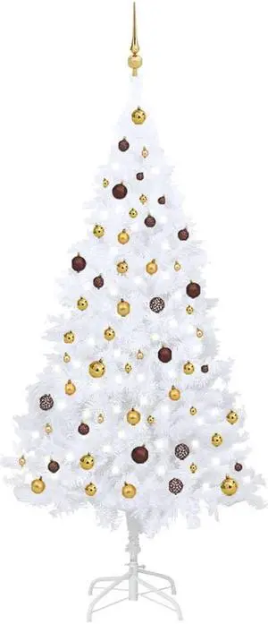 vidaXL Artificial Pre-lit Christmas Tree with Ball Set Xmas Tree Black PVC