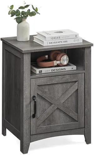 Farmhouse Nightstand with Barn Door, Bedside Table with Storage, Side End Table, Night Stand, Open Compartment, for Bedroom, Misty Gray ULET609G68