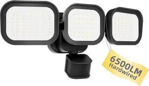 LED Motion Sensor Outdoor Lights, 6500LM, 270° 72FT Detected Range, Dusk to Dawn, 5000K, IP65 Waterproof Flood Lights Outdoor, 3 Head Motion Detector Security Light for Garage,Yard
