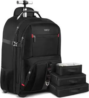 ZOMFELT Rolling Backpack, X-Lare Travel Backpack with Wheels, Carry on Backpack with 3 Packing Cubes, 18 Inch Wheeled Laptop Backpack for Men Women Adults to Travel Work Business Black