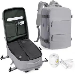 WEPLAN Vacuum Backpack Travel with Pump,Large Travel Backpack with Vacuum System,18.5x13x7.9IN Personal Item Travel Bag,Airline Approved Carry on Luggage,Laptop Backpack,Grey
